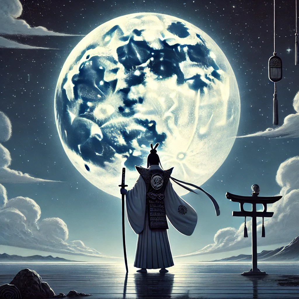 Tsukuyomi is the Shinto god of the moon and night. According to Japanese mythology, Tsukuyomi was born from the right eye of the creator god, Izanagi, and is the brother of Amaterasu, the sun goddess. Unlike other lunar deities, Tsukuyomi is male and is often viewed as a god of calmness and control over the chaos of the night. He is also associated with judgment and is often depicted with an air of mystery, especially after his estrangement from Amaterasu due to a dispute, symbolising the eternal separation of day and night.